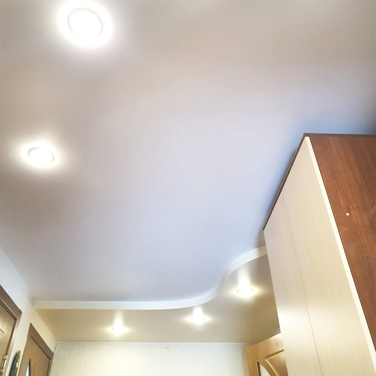 - Освещение: Натяжные потолки отлично работают с различными типами освещения. Вы можете использовать встроенные светильники или светодиодные ленты для создания яркого и комфортного освещения.