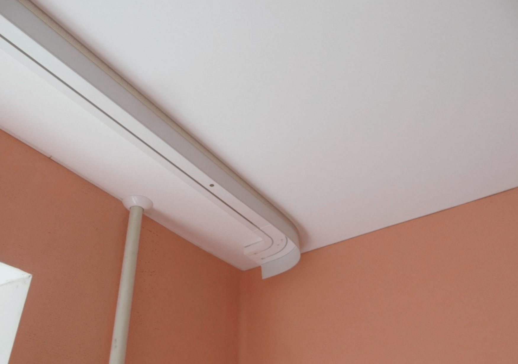 • Эффектно. В отличие от настенных, потолочные карнизы создают особый эффект штор, как будто струящихся из ниоткуда. Такой эффект зрительно приподнимает потолки, наполняя пространство воздухом. Стены кажутся более длинными, что особенно выгодно для квартир в хрущевках и подобных им домах, где высота потолков редко превышает 2,5 м.